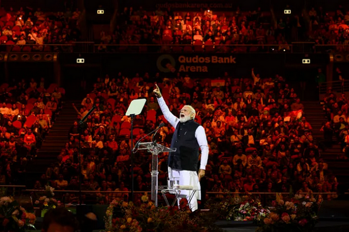 India's Prime Minister Narendra Modi speaking during a rally in Sydney, Australia, on May 23, 2023