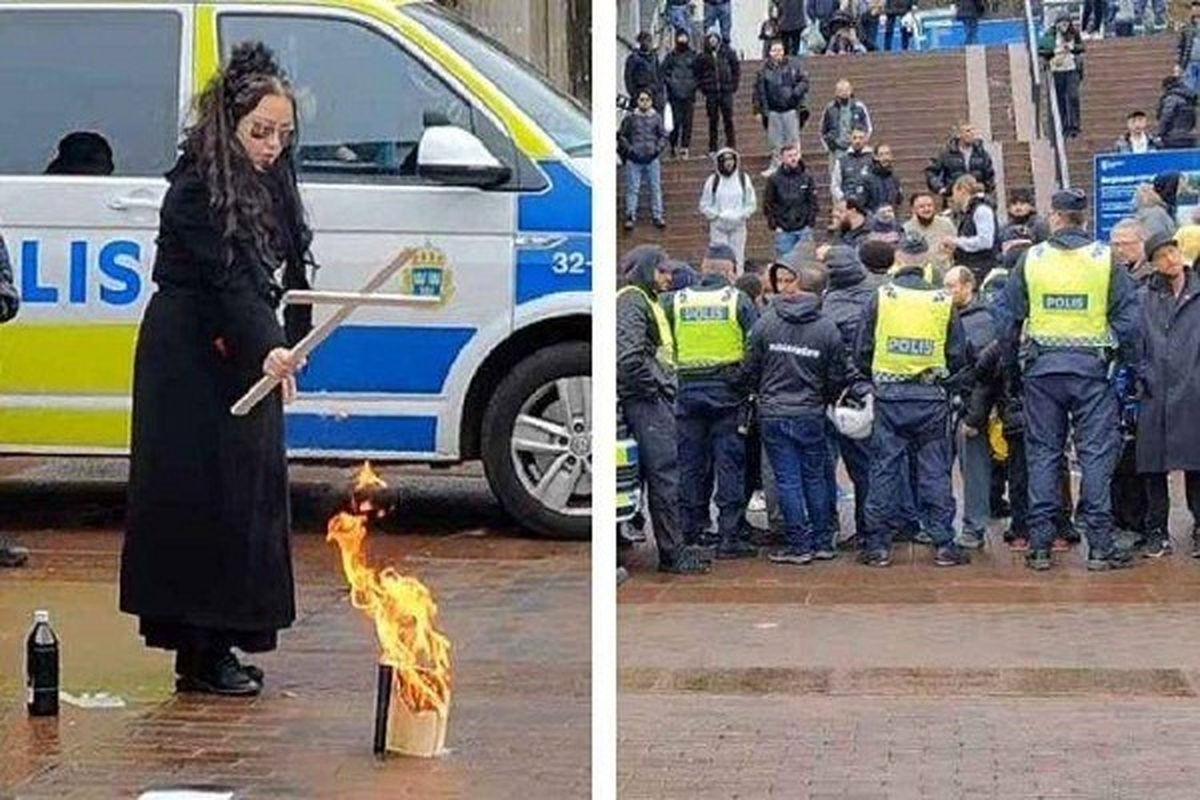 On Friday, a Swedish woman carrying a cross burned a copy of Islam’s Holy Book in Sweden.