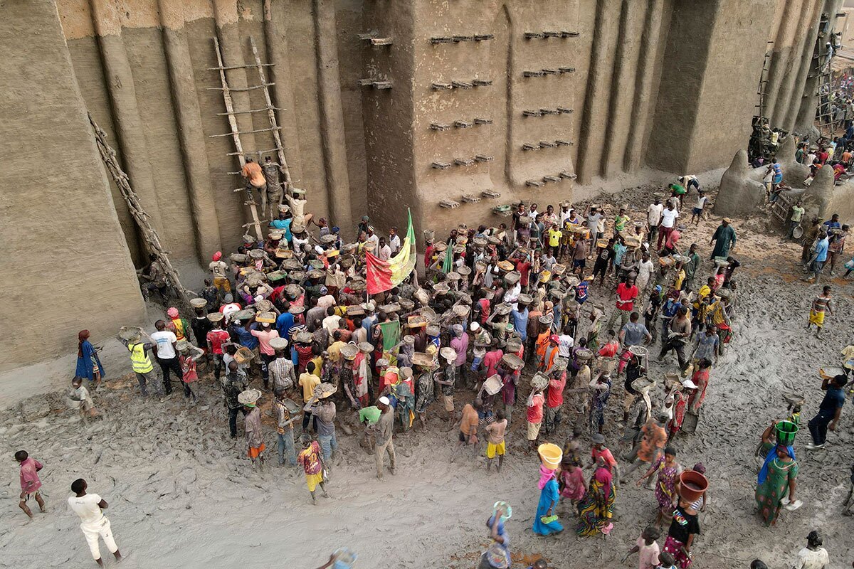 The annual re-plastering of Great Mosque of Djenne in Mali