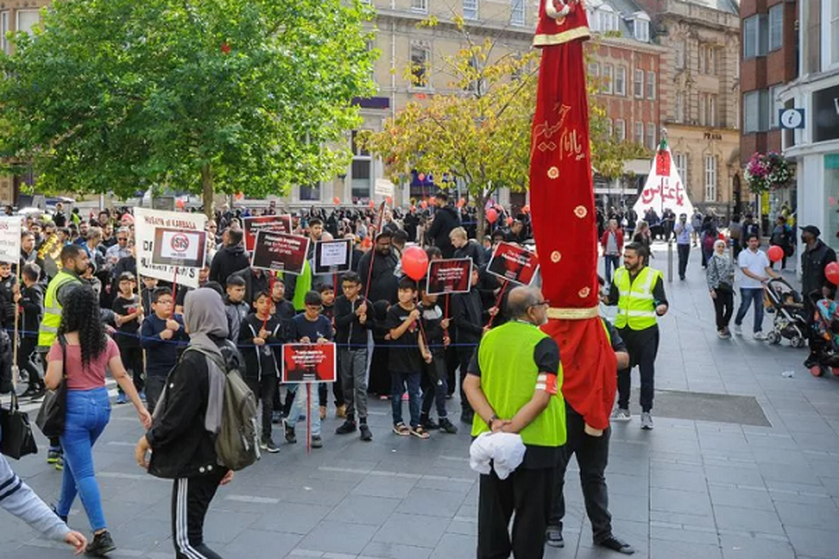 The procession in Leicester set off from Humberstone Gate, heading through East Gates, High Street before ending at Jubilee Square. Procession organizer, Ali Abbas Rajani, said Imam Hussein (AS) was someone whom people can “draw inspiration from.”