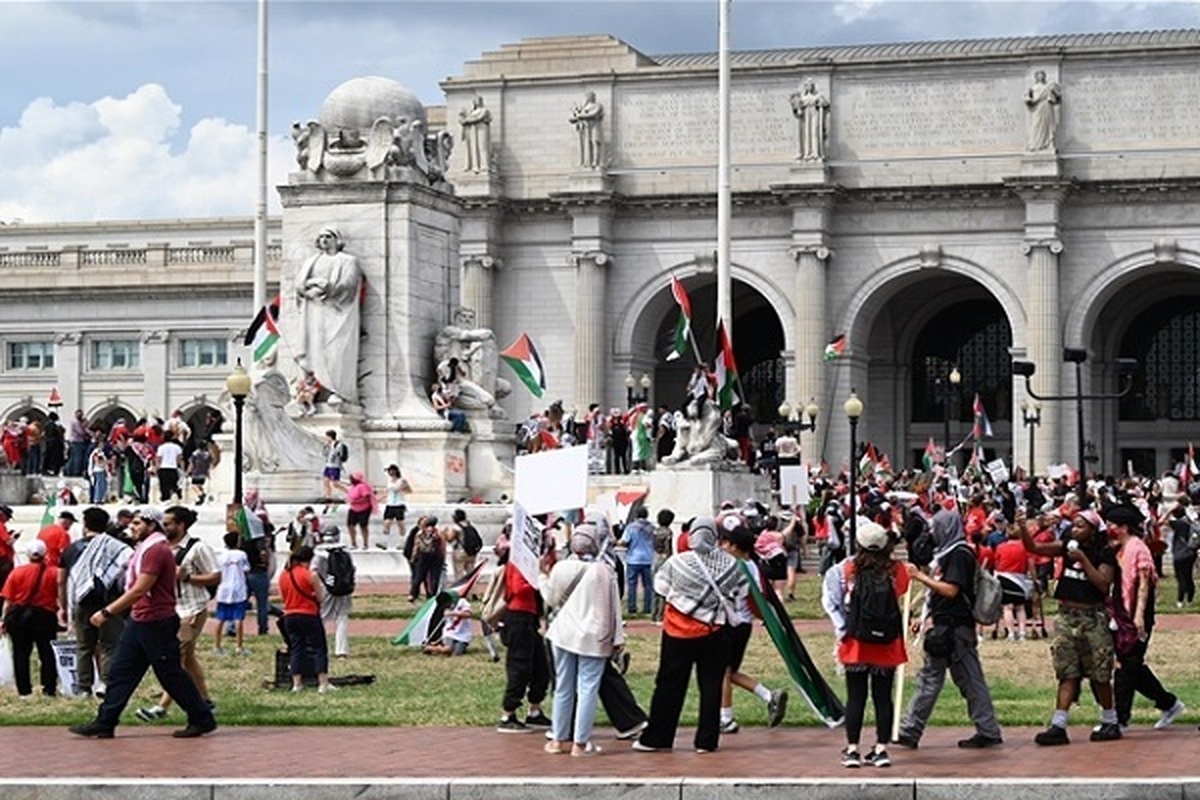 IQNA – The United States’ capital city was the scene of protests against the Israeli regime’s atrocities in Gaza amid the regime’s prime minister’s address to the US Congress on Wednesday.