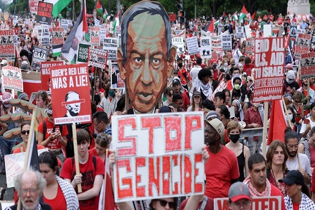 The participants at the demonstrations challenged the premier’s visit to the US at a time when the International Criminal Court (ICC) is seeking arrest warrants for him and other Israeli officials over war crimes and crimes against humanity.