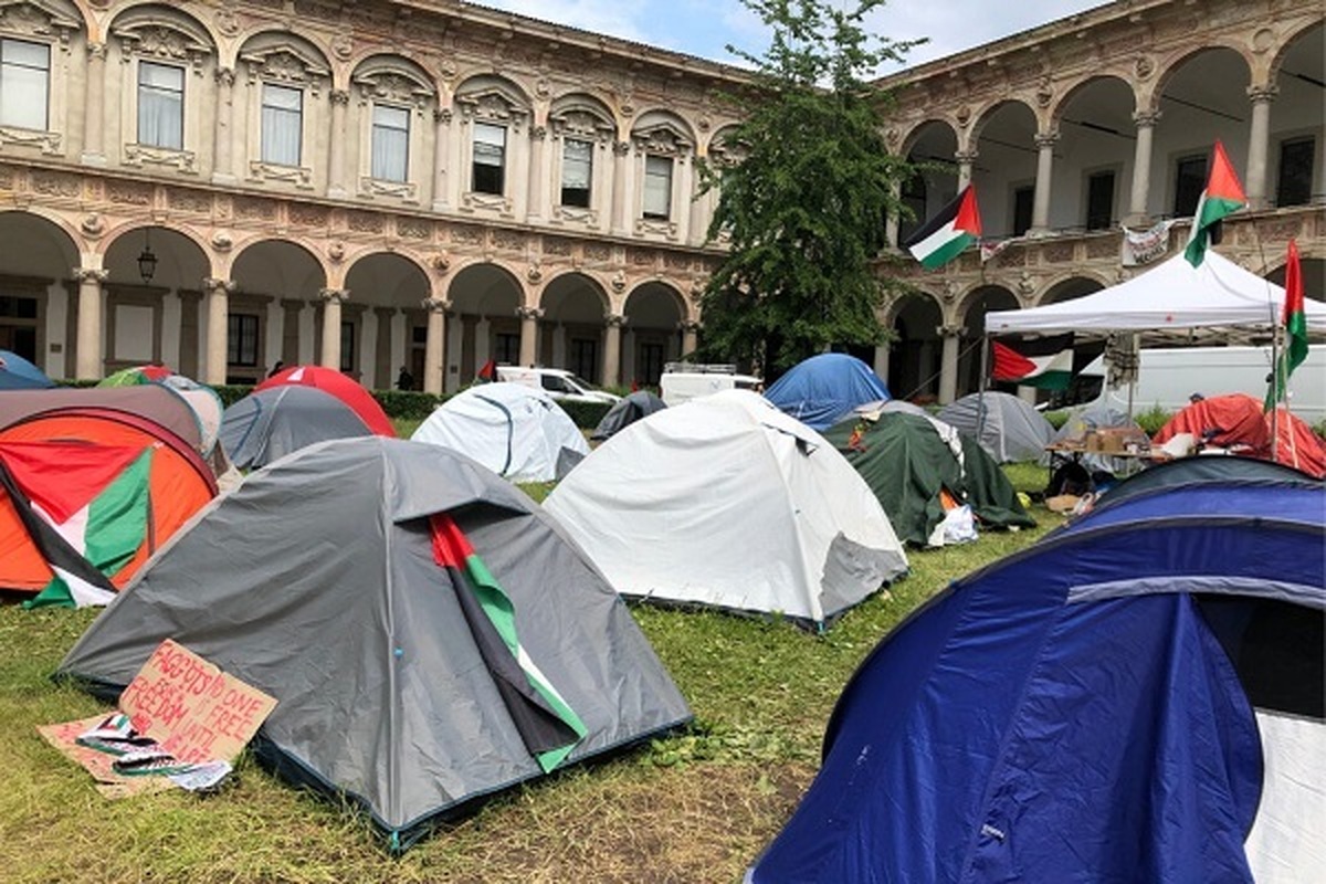 Students organized a sit-in on the campus in Milan last spring to protest against the Israeli attacks on Gaza and their university’s cooperation with universities in the occupation state.