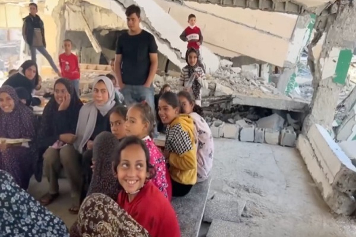The memorizers, who are of different ages, gather in a building destroyed in the Israeli regime’s relentless bombings of Gaza.