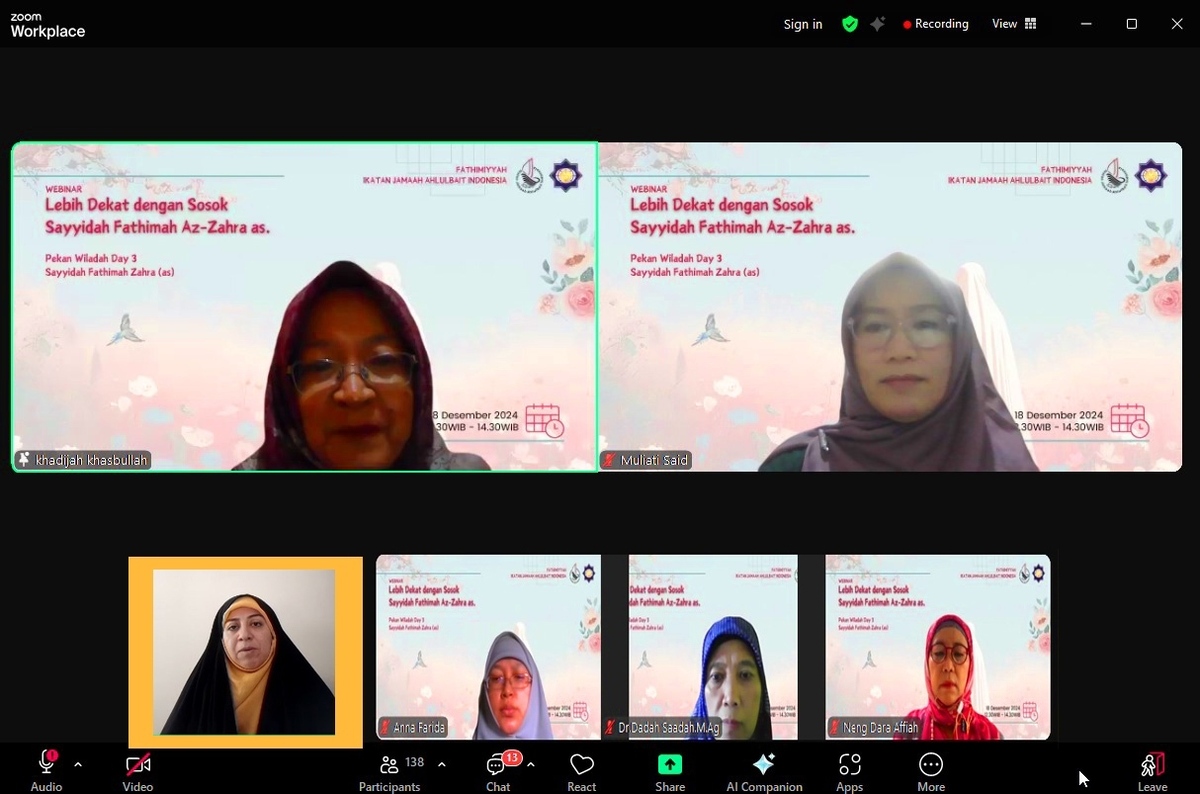 The online seminar was organized by Fatimiya Jamaah Ahlulbait Indonesia (IJABI) on the occasion of the birth anniversary of the Holy Prophet’s (PBUH) daughter (SA).