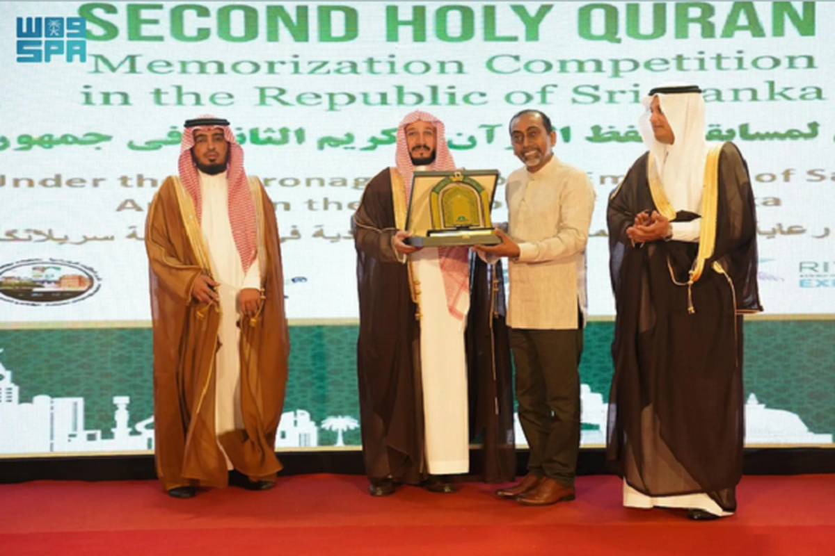 Also speaking was Saudi Arabia's Ambassador to Colombo, Khalid Al-Qahtani, who highlighted the impressive participation of nearly 1,900 male and female contestants from across Sri Lanka, which showcased the event's significance and the commitment of Islamic organizations to engage with top Quran memorizers from various age groups.