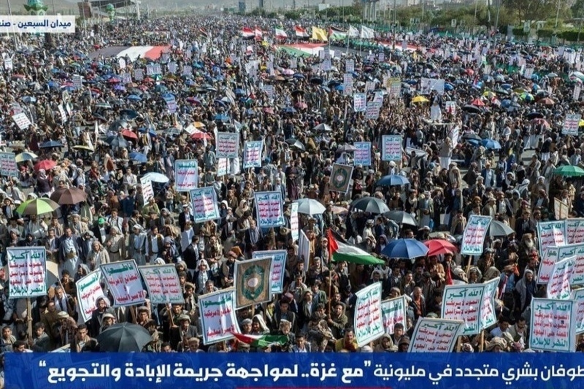 The demonstration was held in the city’s Al-Sabaayn Square with the motto “With Gaza for Confronting Crime of Genocide and Hunger”, Al Maseerah reported.
