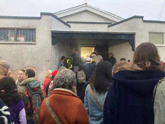 The vigil was held on Friday 10 October, nearly a week after the attack. Organisers said the aim was to bring people together and show solidarity. Attendees left handwritten cards and flowers outside the building.