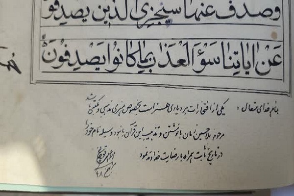 Local cultural figures, Quranic scholars, and calligraphers from Quchan attended the event to honor the artistic and spiritual legacy preserved in this manuscript.