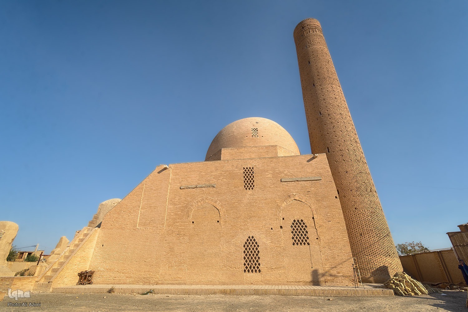 The mosque is a prominent example of Iranian Razi style architecture, known for its brick dome, tall minaret, geometric stucco moldings, and precise structural proportions. Unlike the four-porch mosques that later became popular in the mid-Seljuk period, this building has a central layout with porches and limited side spaces, and is considered to be an early development of mosque architecture in the Seljuk period.