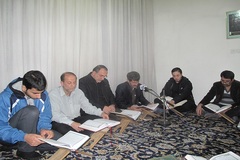 این جلسه که میهمان قشرهای مختلف قاریان، از نوجوان تا میانسال بود با جمع‌خوانی آیاتی از سوره شعراء با مدیریت استاد داورزنی پیگیری شد. وی در ادامه و در جریان تلاوت یکی از قاریان حاضر در جلسه به بیان نکاتی در مورد تفخیم راء پرداخت و بیان کرد: اگر قبل از راء علامت فتحه قرار گیرد این حرف مفخم ادا می‌شود، همچنین نحوه ادای حرف «واو» از مخرج نیز بدین صورت است که بر خلاف ادای این حرف در فارسی باید طوری ادا شود که دندان‌ها به لب برخوردی نداشته باشند و حالت لب‌ها به صورت غنچه باشد.