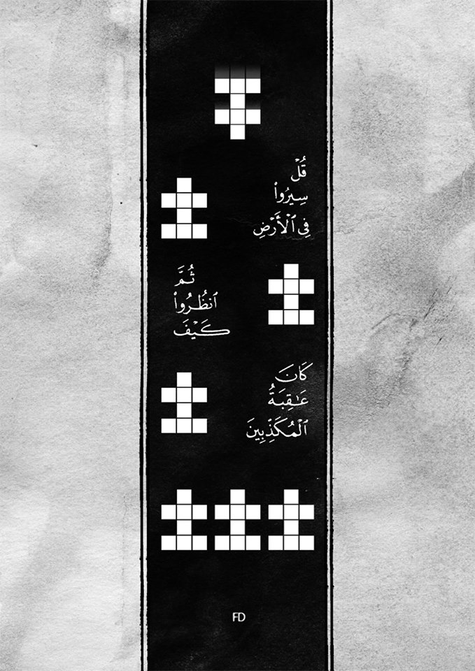 خبرگزاری بینالمللی قرآن(ایکنا) به نقل از پایگاه اطلاعرسانی الیوم السابع، فرید عماره، مهندس معماری اهل مصر، با استفاده از ابزاری ساده و ناچیز پیامهای قرآنی نابی را در قالب گرافیک طراحی کرد.