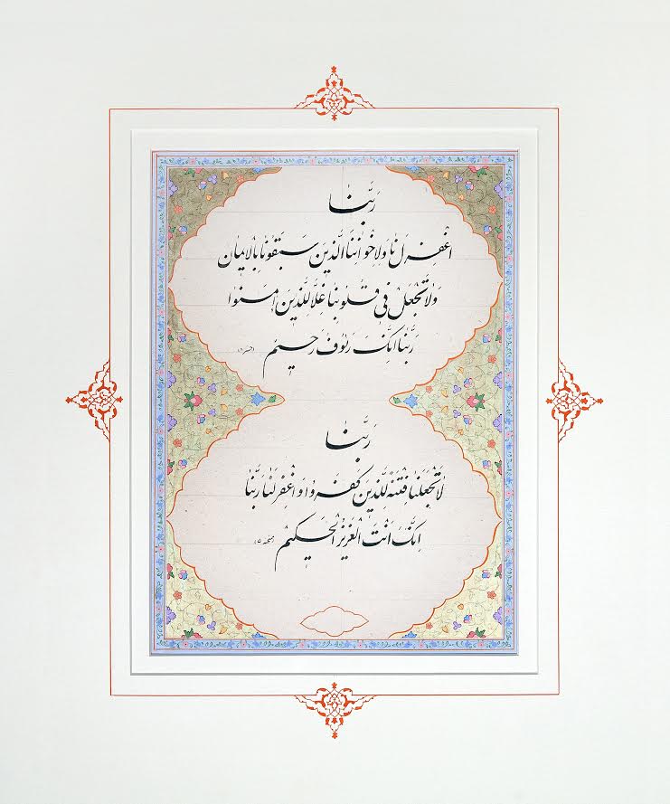 ایکنا: از نمایشگاه اخیرتان در دانشگاه فیلیپین بگویید، استقبال از این نمایشگاه چطور بود؟ ـ این نمایشگاه 26 بهمنماه در دانشگاه «یو پی» مانیل افتتاح شد و تا سه روز ادامه داشت، در آن 40 آیه از قرآن که با «ربنا» آغاز میشود، در معرض دید عموم قرار گرفت. «ربنا» در این آیات همه به یک شکل خوشنویسی شده است.