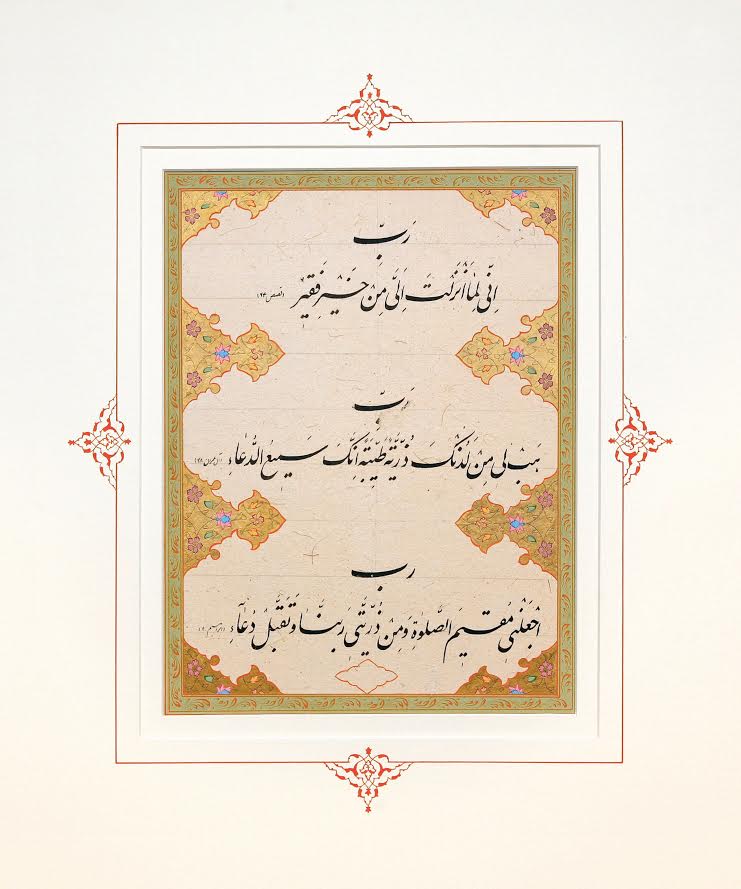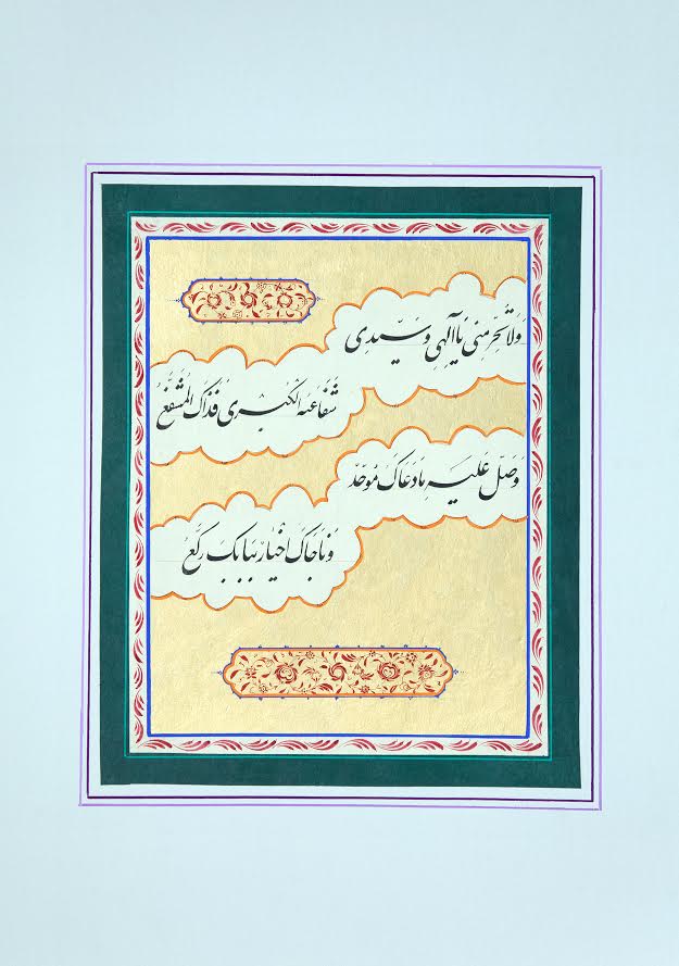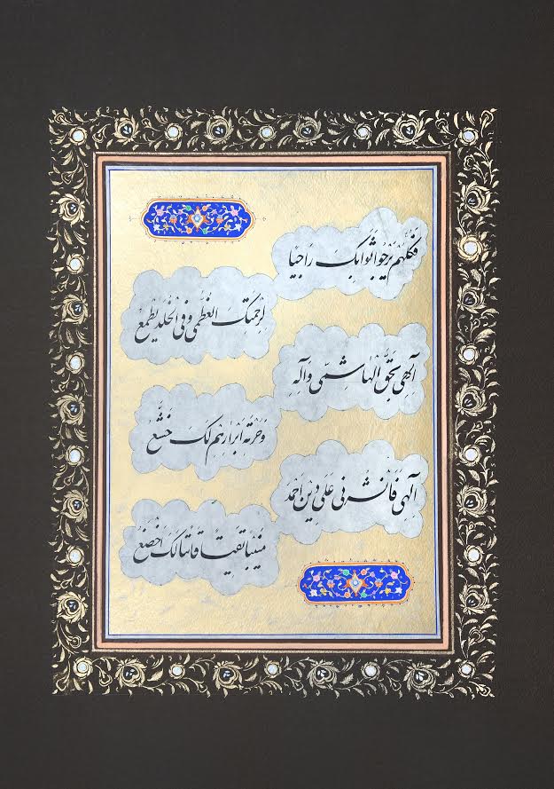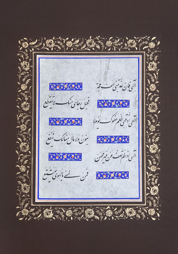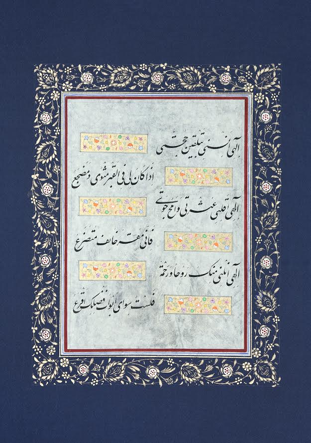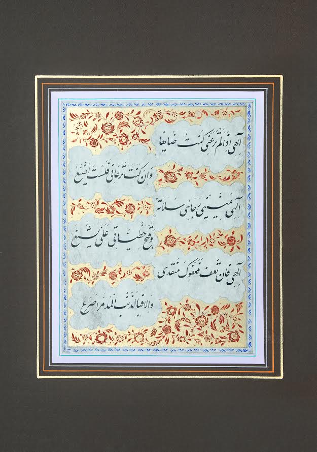 حدود یک سال بعد مناجات حضرت علی(ع) را که مرقع* شده است، خوشنویسی کردم، اثری که حس معنوی وصفناپذیر در حین خلق آن داشتم و این حس حتی تحسین یکی از اساتید فن را برانگیخت.