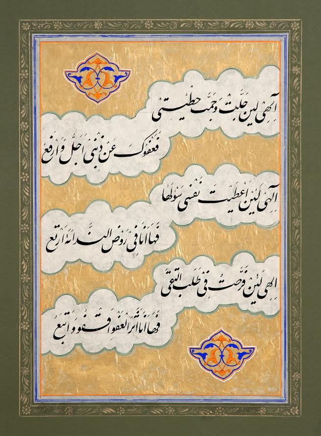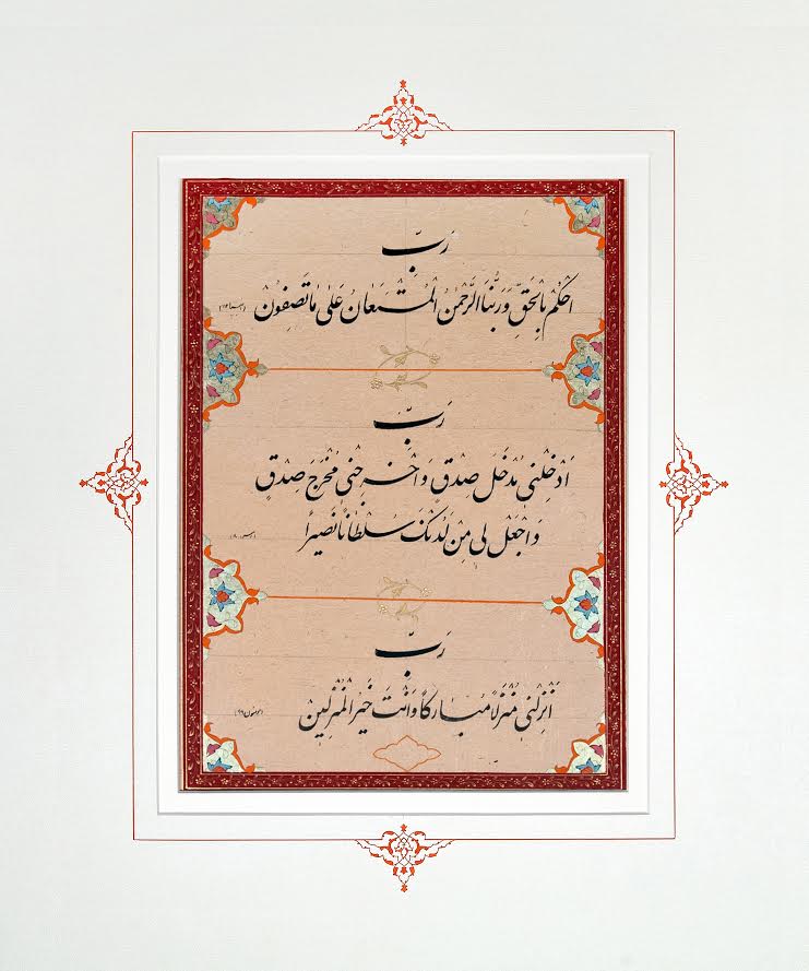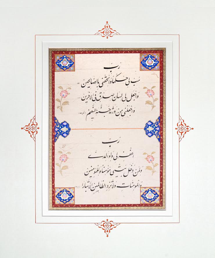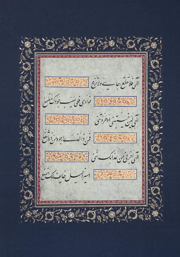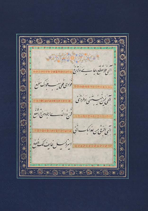 حدود یک سال بعد مناجات حضرت علی(ع) را که مرقع* شده است، خوشنویسی کردم، اثری که حس معنوی وصفناپذیر در حین خلق آن داشتم و این حس حتی تحسین یکی از اساتید فن را برانگیخت.