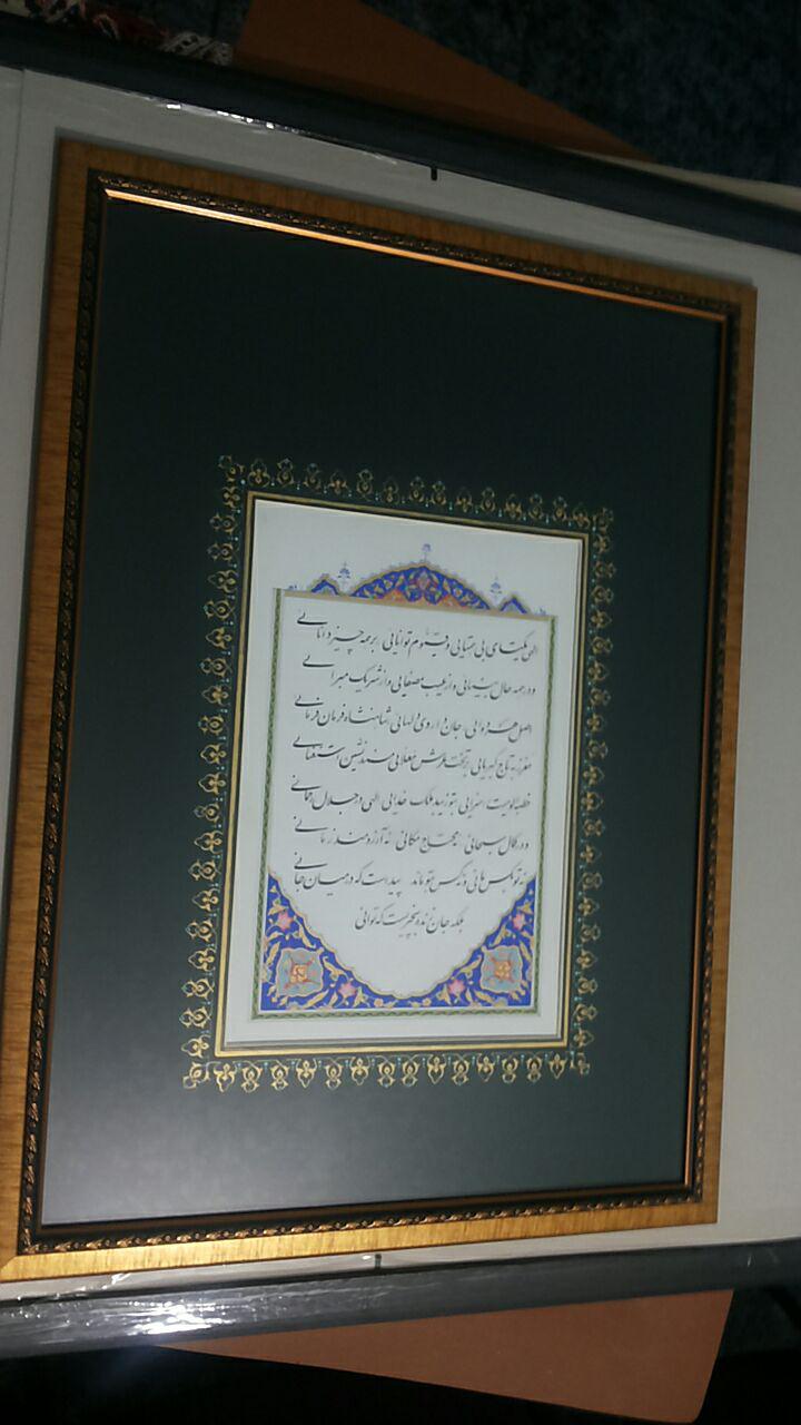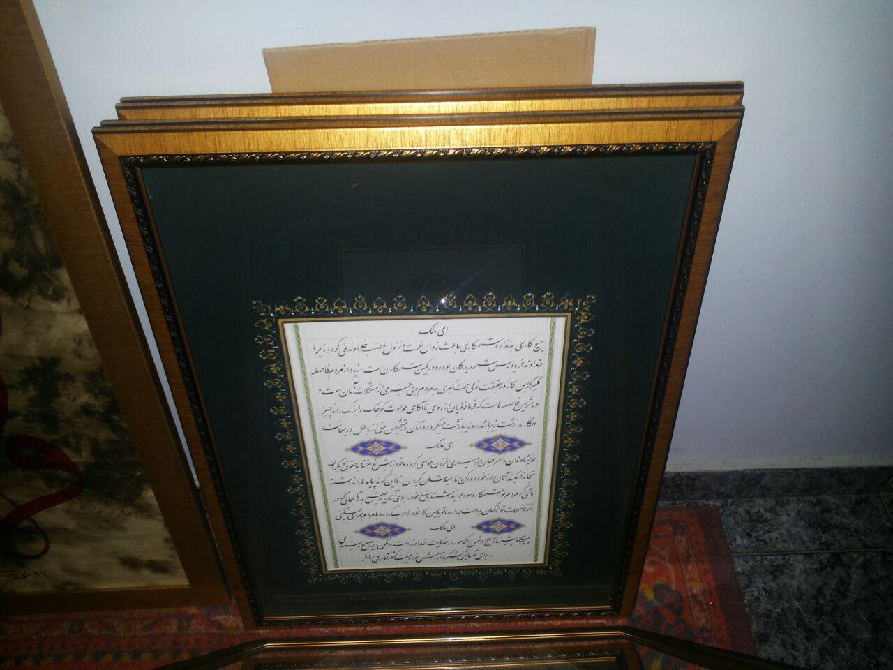 سوره کوثر را نیز خوشنویسی کردم و این سوره به عنوان اثر برگزیده در ایران انتخاب شد، آن را به دخترانم فاطمه و ریحانه هدیه کردم، چون میخواستم به عنوان اثری ماندگار نزد فرزندانم به یادگار بماند.