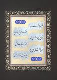 ایکنا: درباره دیگر آثاری که تاکنون ارائه دادهاید، توضیحاتی بفرمایید؟ ـ اشعار محتشم کاشانی درباره امام حسین(ع) و همچنین اشعار خیام نیشابوری و اسماء الحسنی را نیز خوشنویسی کردهام، من اگر ساعتها بنشینم و قرآن خوشنویسی کنم، خسته نمیشوم و لذت میبرم و معتقدم هنرمند خوشنویس با خدا راز و نیاز و حسی معنوی را درک میکند که قابل وصف نیست.