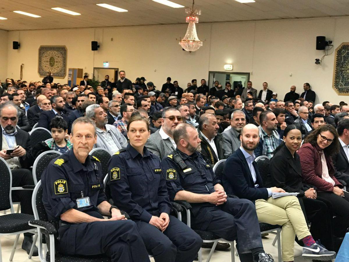 خبرگزاری بینالمللی قرآن(ایکنا)، این گردهمایی با حضور عموم مردم از ملیتها و ادیان مختلف با حضور در سالن اجتماعات مرکز اسلامی امام علی(ع) سوئد برگزار شد و شرکتکنندگان از بروز این حادثه تأسف بار اعلام انزجار کرده و ضمن اعلام همبستگی با مرکز، نگرانی عمیق خود از تکرار چنین حوادثی که مخدوشکردن مبانی دموکراسی حاکم بر سوئد و اصول همزیستی مسالمتآمیز، بردباری، احترام و امنیت در جامعه را نشانه رفته است، ابراز کردند.