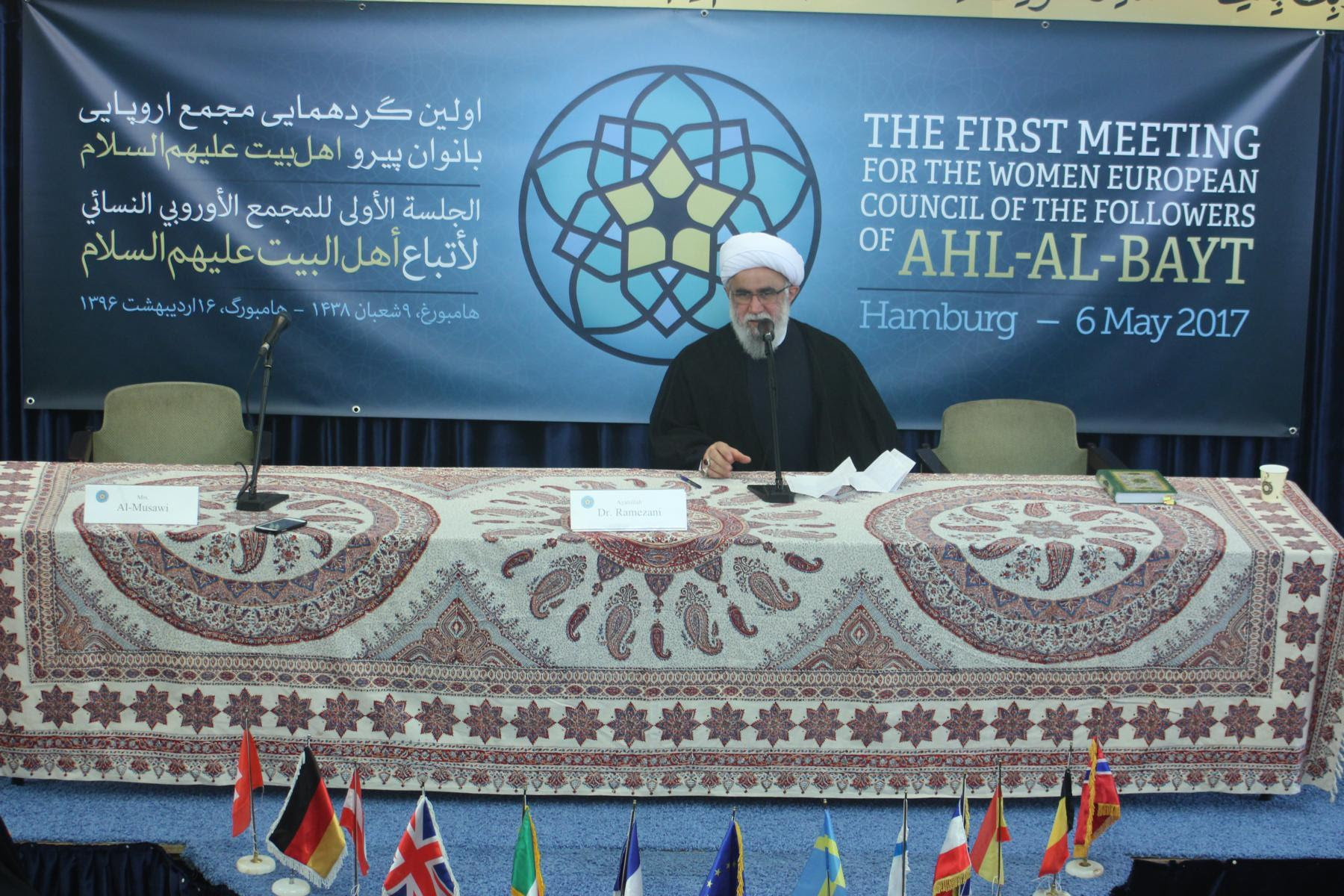 پروردگار مهربان را حمد و سپاس می‌گزاریم که به توفیق و عنایتش در آستانه میلاد آخرین ودیعه الهی امام عصر عجّل اللّه تعالی فرجه الشریف و ماه عظیم رمضان که ماه معنویت و بازگشت به هویت الهیِ انسان است، به عنوان زنان مسلمان اروپا، با یاد پیامبر اعظم صلّی اللّه علیه وآله وسلّم و اهل بیت عصمت و طهارت علیهم افضل صلوات المصلّین، در مسجد دیرپای امام علی علیه السلام هامبورگ گرد هم آمدیم تا با افتخار و مسرّت، تشکیل مجمع اروپایی بانوان پیرو اهل البیت علیهم السلام را اعلام نماییم.