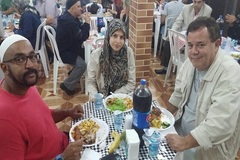 ادامه با برگزاری مراسم پذیرایی و صرف شام، مهمانان مسلمان و غیر مسلمان در کنار