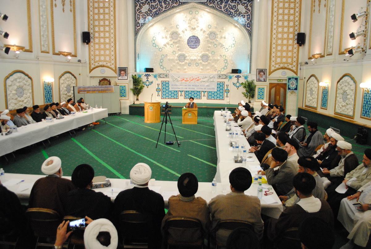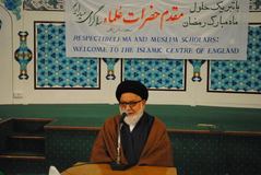 پس از خیرمقدم و اعلام برنامه توسط حجت الاسلام شیخ میرزا عباس و تلاوت قرآن توسط آقای معصومی، اولین سخنران این جلسه، حجت الاسلام و والمسلمین سید مرتضی کشمیری نماینده آیت الله سیستانی در انگلیس سخنانی ایراد کرد.