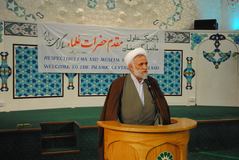 سخنران بعدی آقای مسعود شجره، رئیس کمیسیون حقوق بشر اسلامی بود که نکاتی را در آستانه فرارسیدن روز قدس یادآور شد. وی ضمن تشکر از علما و به ویژه مدیریت مرکز اسلامی برای این فرصت، خاطرنشان کرد که برای ما که در محیط غرب و در محیطی غیراسلامی و شاید گاه ضد اسلامی زندگی می کنیم بسیار مهم است که با توجه به آزادی بیان و حق آزادی تجمعات صدای مظلومیت مردم فلسطین را به گوش همه برسانیم. وی با بیان اینکه امسال به دلیل همزمان شدن ماه مبارک رمضان با ایام باز بودن مدارس و دانشگاه ها راهپیمایی روز قدس لندن برای روز یکشنبه 18 ژون در نظر گرفته شده، از همه علما و روحانیون درخواست کرد ضمن شرکت در این راهپیمایی، تا جایی که ممکن است دیگران را نیز تشویق کنند.