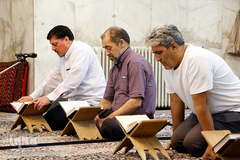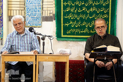 شب گذشته در این جلسه قرآن، اعضای جلسه صفحه ای از جزء چهارم قرآن کریم را تلاوت کردند و در خلال تلاوت ها، علی یارایی، پیشکسوت قرآنی، نکات روخوانی، روانخوانی و تجویدی اعضا را متذکر شد.