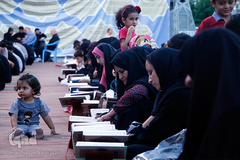 از صحنههای زیبای این مراسم جزءخوانی، استماع تلاوت از نقطه نقطه میدان امام حسین(ع) است. گاهی رهگذرانی از اقشار مختلف که فرصت نشستن پای رحل قرآن را ندارند، دقایقی ایستاده و آیات الهی را زمزمه میکنند.
