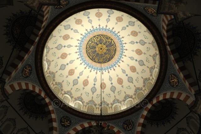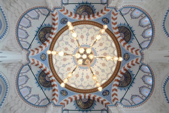 دیوارها و سقف مسجد نیز با تزئینات زیبا، نقوش هندسی و خوشنویسی اسلامی زینت داده شده است.