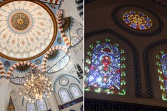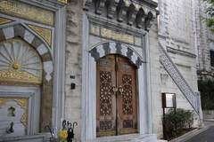 نمای بیرونی مسجد بازسازی شده و طراحی زیبای درهای آن با نقوش هندسی پیچیده نشاندهنده اسلامی بودن این بنای معماری است.