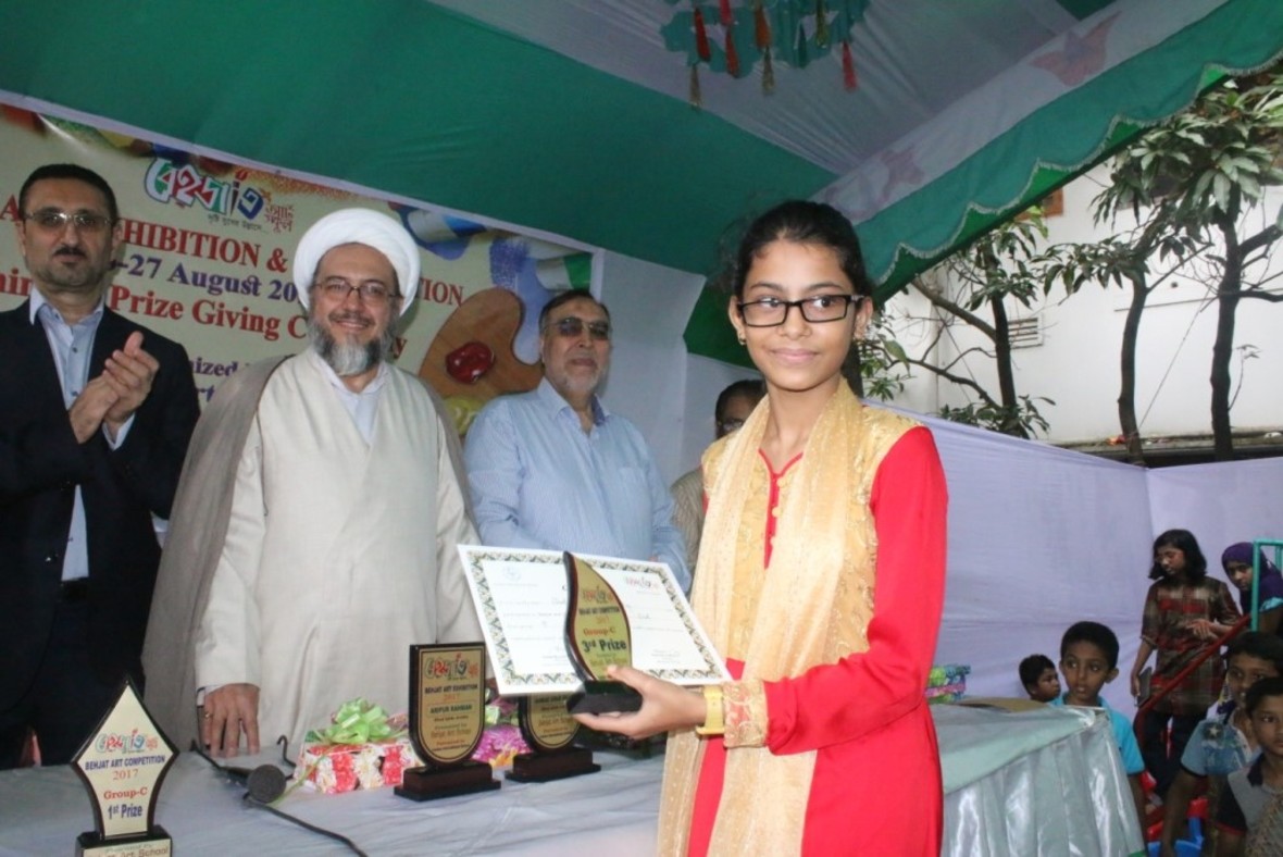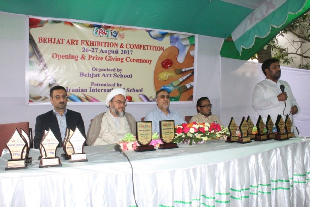 نمایشگاه روزهای 4 و 5 شهریور در حیاط مدرسه برپا شد و بازدید از آن برای عموم آزاد بود. روز اول، مسابقه بین مدارس برگزار شد و هیئت داوران متشکل از 3 نفر درباره آثار هنری داوری كردند. ساعتی بعد، طی مراسمی نمایشگاه افتتاح و به برندگان مسابقه لوح تقدیر و گواهینامه و جوایز اهدا شد. برای صاحبان آثار هنری برگزیده نیز که در نمایشگاه ارائه شد، لوح یادبود و گواهینامه و جوایز اهدا شد. در مراسم افتتاحیه علاوه بر سیدموسی حسینی، رایزن فرهنگی ایران در بنگلادش و مدیر مدرسه بینالمللی ایران، عارفالرحمن، هنرمند مشهور بنگالی و عضو هیئت داوران، حجتالاسلام شهابالدین مشایخی، نماینده جامعه المصطفی در بنگلادش و احمد عربرحیمی، کارشناس فرهنگی رایزنی فرهنگی كشورمان و عضو دیگر هیأت داوران حضور داشتند.