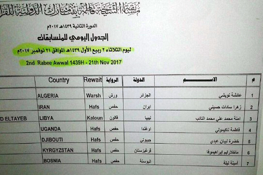 گفتنی است، دومین دوره رقابتهای بین المللی قرآن بانوان امارات موسوم به مسابقات «شیخ فاطمه بنت مبارک» تا روز سوم آذرماه ادامه خواهد داشت.