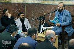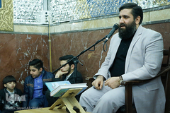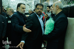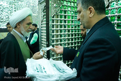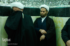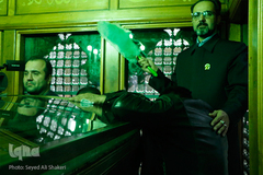 سپس، امیر نعیمی، مداح اهل بیت(ع) دقایقی به مداحی و روضهخوانی پرداخت. در خلال مداحی وی، عاشقان و زوار این آستان مقدس به نوبت داخل ضریح مبارک سیدالکریم(ع) شده و مزار مطهر ایشان را با پارچههای سفید اهدایی آستان، غبارروبی میکردند.