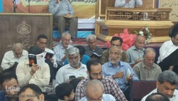 یادآور میشود، این مراسم با قرائت دعا توسط عبدالله محبوبی و حامد یوسفی و مداحی امین غریبی برگزار شد.