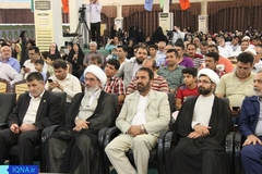 یادآور میشود: کربلایی محسن احمدی، ذاکر اهل بیت(ع) در بخش پایانی آئین جشن بزرگ عید غدیر خم در وصف اولین پیشوای شیعیان مولودی خوانی کرد و سپس از حاضرینی که نام های عید غدیر در احادیث ائمه اطهار(ع) را حفظ کرده بودند به قید قرعه از سوی بنیاد بین المللی غدیر استان بوشهر و کانون فرهنگی و هنری امام هادی(ع) تجلیل شدند.