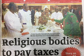 بنا به گزارش روزنامه دیلی گرافیک که خبر آن در سرتیتر صفحه اول(پیوست) درج شد، رهبران مذهبی با دولت غنا برای پرداخت مالیات درآمدهای خود در این مراکز به توافق کامل رسیدند.