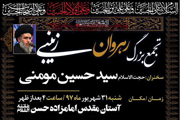در این تجمع که به‌منظور همنوایی با حضرت زینب کبری‌(س) و لبیک بانوان به پیام عاشورا برگزار می‌شود، حجت‌الاسلام‌والمسلمین سیدحسین مؤمنی سخنرانی می‌کند.