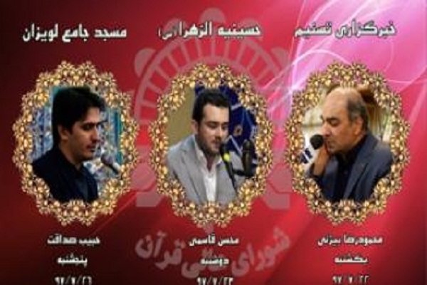 گروه فعالیت‌های قرآنی ــ صد‌وچهاردهمین کرسی تلاوت اذانگاهی شورای عالی قرآن با تلاوت حبیب صداقت در مسجد جامع لویزان برگزار می‌شود.