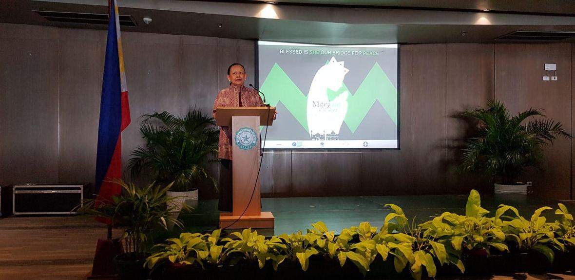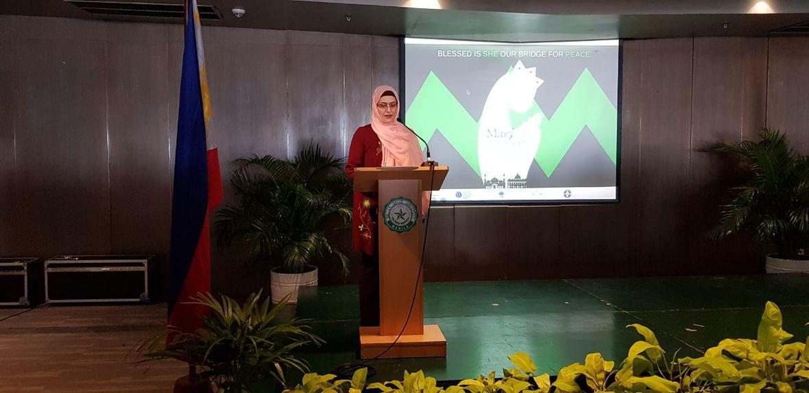 سپس آمنه رسول Amina Rasul رئیس مرکز اسلام و دموکراسی دانشگاه دولتی فیلیپین با موضوع حضرت مریم(س) سخنرانی کرد و گفت: حضرت مریم تنها بانویی است که در قرآن یک سوره به نام او نامگذاری شده است در صورتی که در انجیل این گونه نیست .