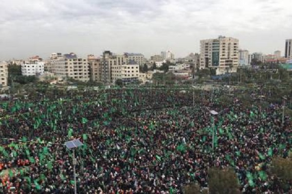 samanews»؛ در این مراسم که در میدان «الکتیبه» غزه در حال برگزاری است، بیشتر گروههای فلسطین حضور دارند.