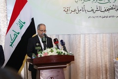 سیدعلاء الموسوی، رئیس اداره اوقاف شیعیان عراق، دیگر سخنران مراسم بود که ضمن قدردانی از کمیتههای همکاریکننده این طرح در داخل و خارج از عراق، تأکید کرد: کتابت این مصحف با سرانگشتان هنرمندان عراقی آرزویی بوده که با کمک خیرین عراقی تحقق یافته است.