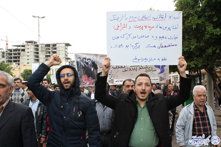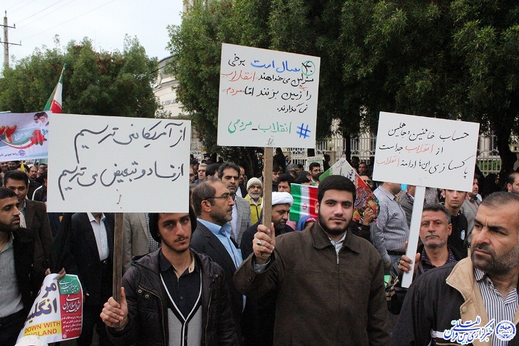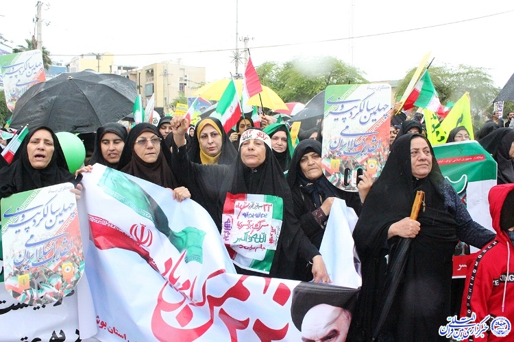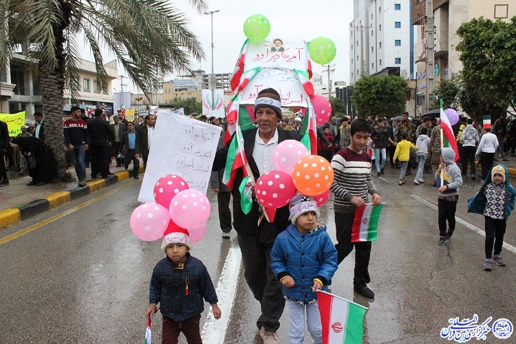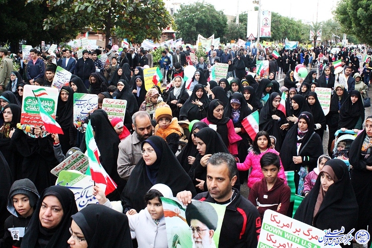 مردم شیعه و سنی استان دارالحماسه بوشهر با پلاکادرهای «مرگ بر آمریکا خبیث، مرگ بر اسرائیل کودک کش و مرگ بر وهابیٌت کثیف» به صحنه راهپیمایی بعثت انقلاب اسلامی ایران آمدند که بگویند با استمداد از پروردگار سبحان به مانند معجزه الهی رود نیل؛ شما در قعر امواج حضور میلیونی مردم کرانهنشین آبهای نیلگون خلیج فارس غرق میکنیم.