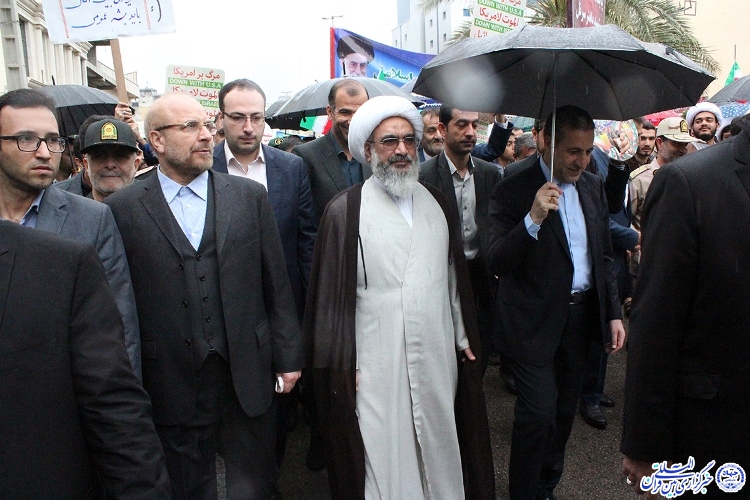 ملت عزتمند ایران امروز با هوشیاری بالا و اطاعت از فرامین رهبری به راهپیمایی 22 بهمن چهل سالگی بعثت انقلاب آمدهاند که به مستکبرین جهان سلطه و فرعونیان ظالم زمان بگویند که همچنان شعار مردم کشور ما «نه شرقی، نه غربی، جمهوری اسلامی»، «استقلال خواهی، قرآن محوری، مسجد محوری، روحانی محوری» است و بر این اعتقادیم که خداوند بالاتر و والاتر هر کسی است و وعده الهی حق است و بهزودی محقق میشود.