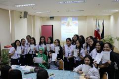 به گزارش ایکنا از فیلیپین؛ در ادامه بزرگداشت چهلمین سالگرد پیروزی انقلاب اسلامی ایران در فیلیپین، کارگاه هنر و خوشنویسی به همت انجمن خوشنویسان ایران شعبه مانیل در دانشگاه «سنت اسکولاستیک» مانیل با موضوع مشترکات خوشنویسی نستعلیق و بای بایین (خط فیلیپینی پیش از دوره حضوراسپانیاییها) برگزار و طی آن تابلوی صلح؛ کار مشترک تندیس تقوی، بانوی هنرمند ایرانی، مسئول انجمن خوشنویسان ایران شعبه مانیل و معاون انجمن زنان ایران و فیلیپین و «تایپان لوسرو»، هنرمند فیلیپینی به خانم کریستین پینتو(Christine Pinto)، رئیس دانشگاه سنت اسکولاستیک اهدا شد.
