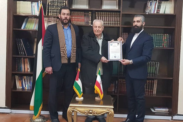 در این دیدار حكم سفير نيكوكارى و صلح و دوستى از سوی محسن زارع اشکذری، دبیر پنجمین کنفرانس بینالمللی صلح به سفیر فلسطین در ایران ابلاغ شد.