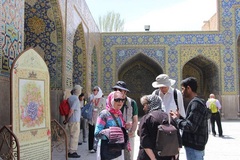 از ديگر برنامهها حضور يكي از طلاب خوشنويس جهت خطاطي به صورت زنده و اهداء نام گردشگران با خط زيبا به فارسي به آنها بود.