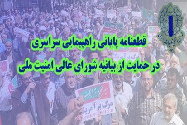 قطعنامه پایانی راهپیمایی سراسری در حمایت مردم از بیانیه شورای عالی امنیت ملی