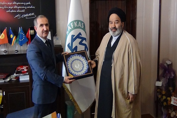 وی در ادامه ضمن دعوت رسمی رئیس دانشگاه قفقاز به ایران، به معرفی دانشگاه پرداخت و گفت: دانشگاه ادیان و مذاهب تا کنون چهارصد عنوان کتاب منتشر کرده است و بزرگ‌ترین کتابخانه تخصصی ادیان و مذاهب در خاورمیانه متعلق به ما است.