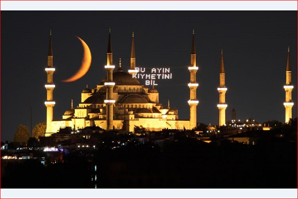 در سنت تزئین مساجد، که به جای مانده از دوره عثمانی است، چراغهای زینتی در بالای مساجد آویزان میشود که جملهای مرتبط با رمضان یا شب قدر و یا پایان رمضان بر روی آن چشمنوازی میکند.