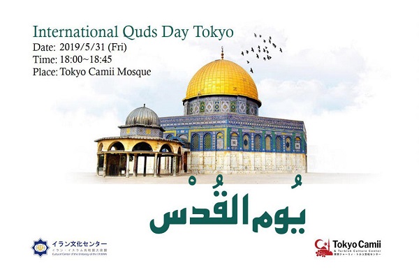 مراسم روز قدس مسجد جامع توکیو ساعت 18 به وقت محلی آغاز میشود و با قرائت قرآن، شرح تاریخچه فلسطین به زبان ژاپنی و سخنرانی سفیر ایران در توکیو(فارسی و ژاپنی) و سفیر فلسطین در توکیو به دو زبان انگلیسی و ژاپنی، همراه خواهد بود.